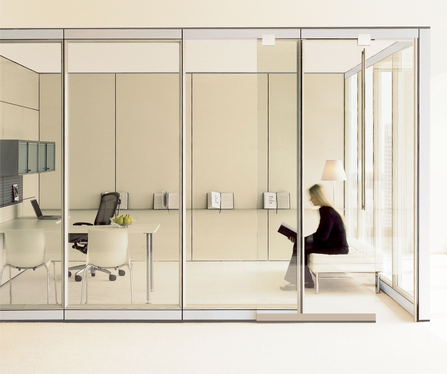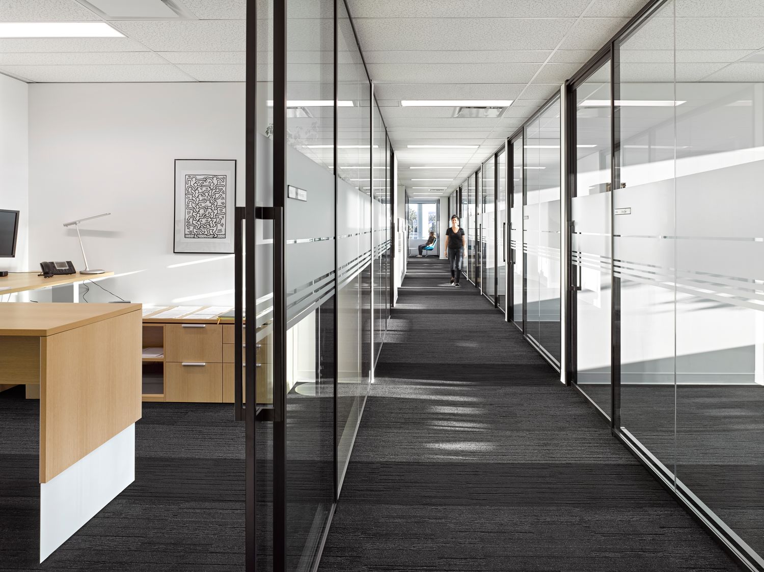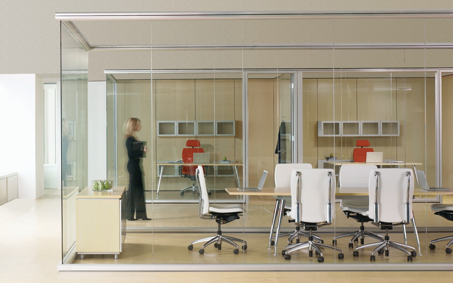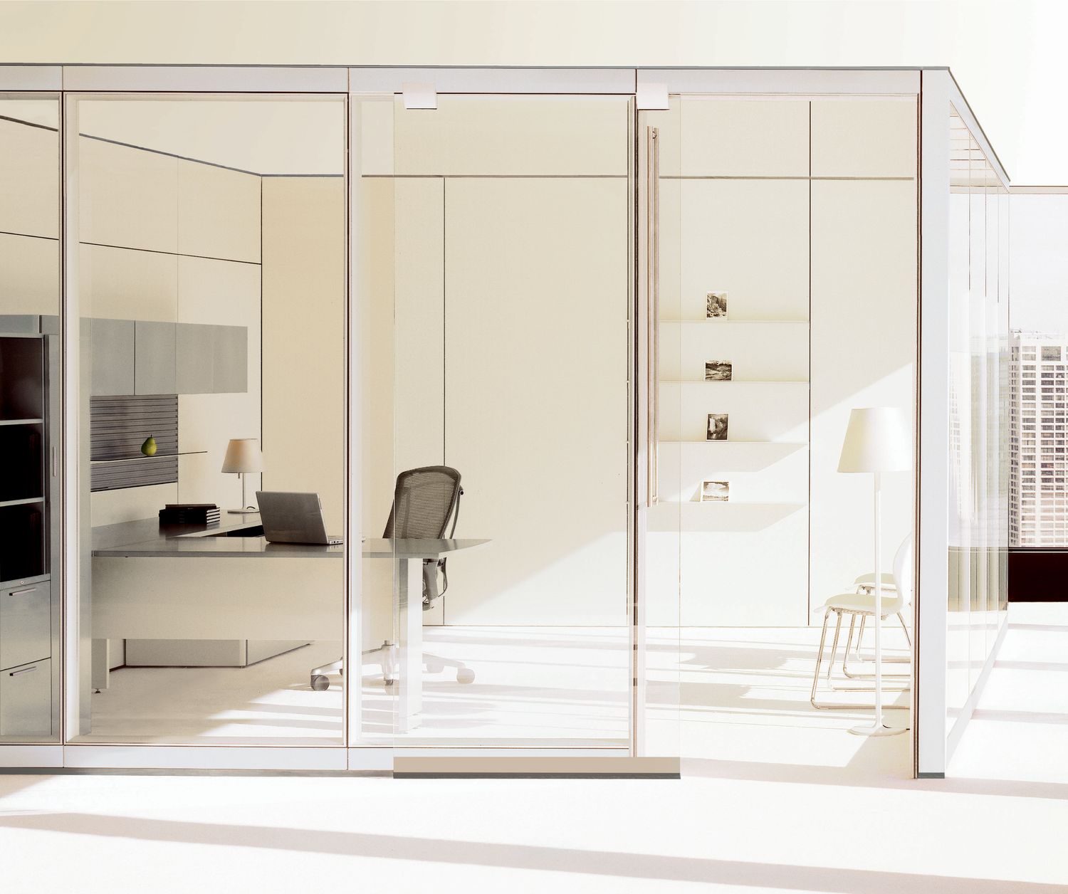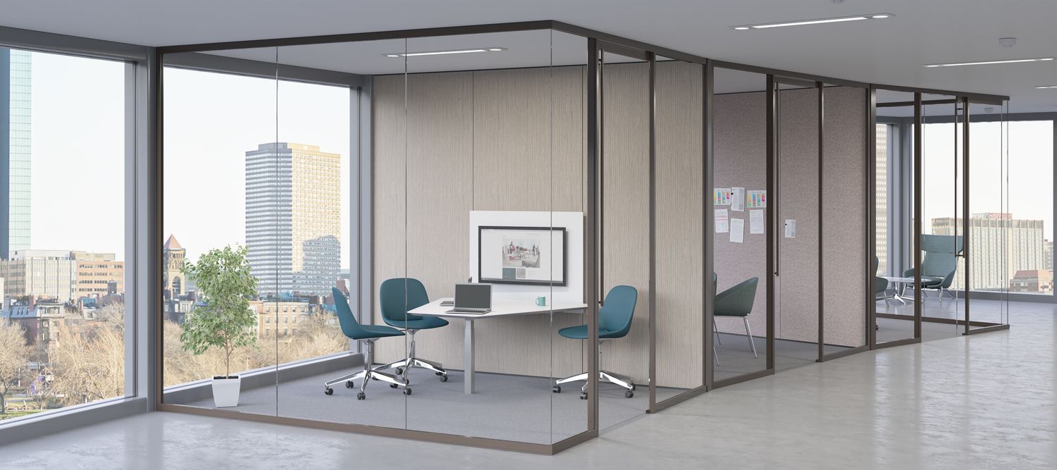 Tek Vue is a glass office-front system that responds to the essential needs of today’s workplace. The system focuses on single-center glazing and thin-profile frames, while providing effortless integration with conventional construction and existing Teknion wall programs.