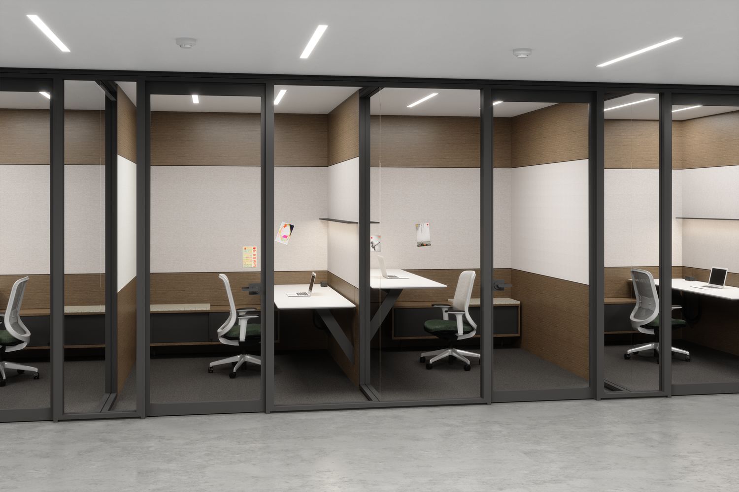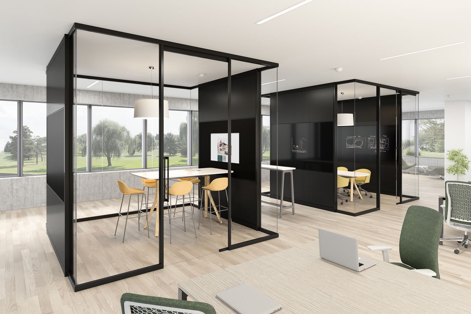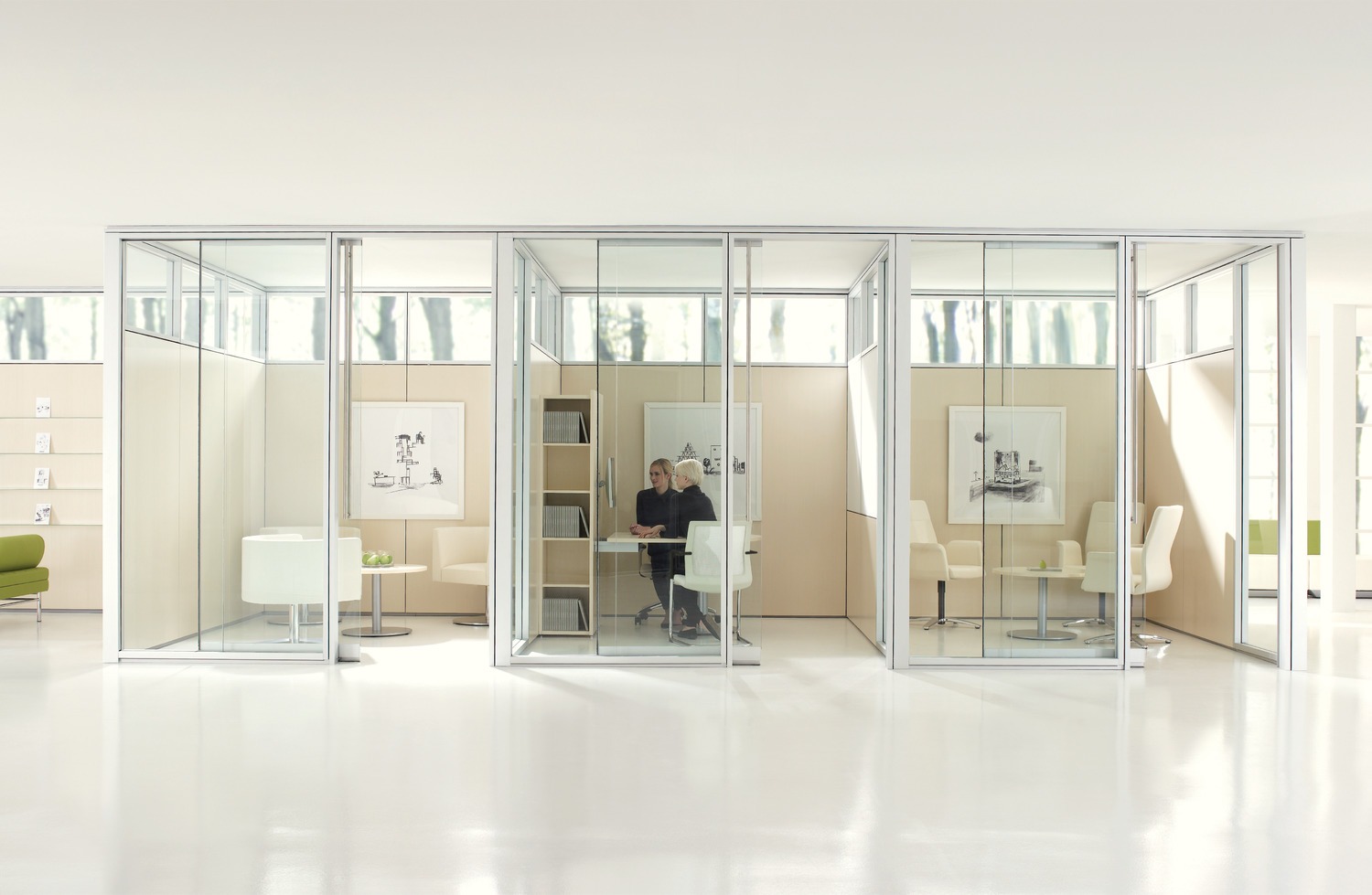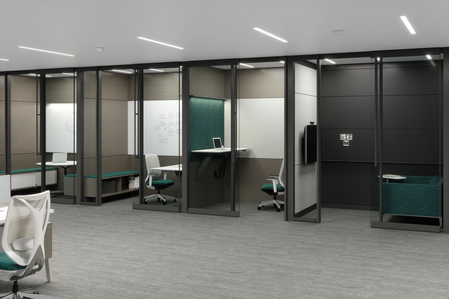 Focus offers a tailored approach to specific environments with its acoustic and visual continuity, and matching wall and door pairings. Frame and trim components are light in proportion through seamless in-line and corner connections, providing a minimal architectural presence.